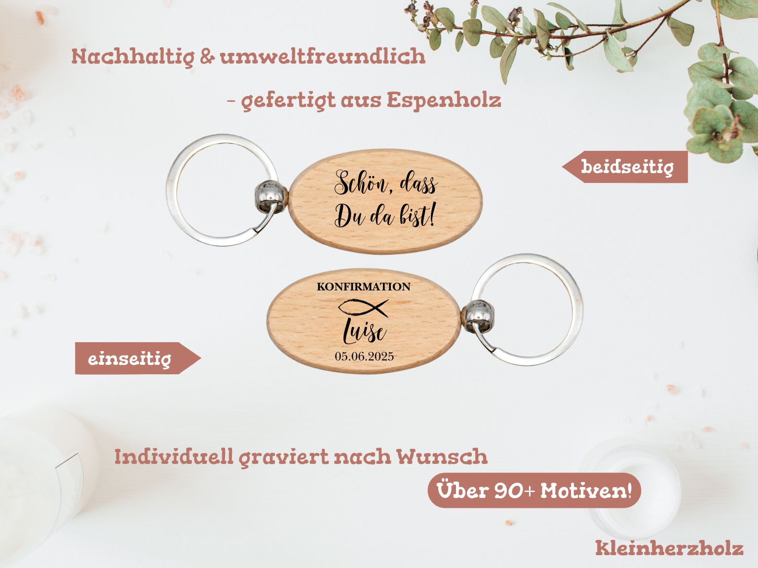 Sind Sie auf der Suche nach einem einzigartigen, nachhaltigen und personalisierten Geschenk? Unser gravierter Holz-Schlüsselanhänger aus hochwertigem Espenholz ist die ideale Wahl! Perfekt für besondere Anlässe wie Geburtstage, Hochzeiten, Taufen oder Konfirmationen, aber auch als stilvolles Accessoire für den Alltag.